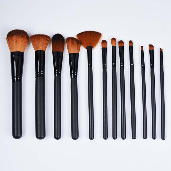 Dongshen 12pcs professional makeup brush set is made of vegan synthetic hair, aluminum ferrule and black wooden handle. The makeup brush set includes loose powder brush, foundation brush, contour brush, fan brush, concealer brush, and eye makeup brush. The synthetic hair makeup brush is cruelty-free, soft and skin-friendly. The wooden handle design can have a good grasping force, and it is not easy to tire your hands.